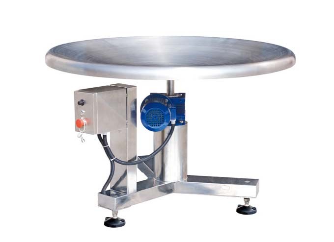 Driven by motor, the turning table will sort or collect the empty containers for packing or collect the finished packing products.